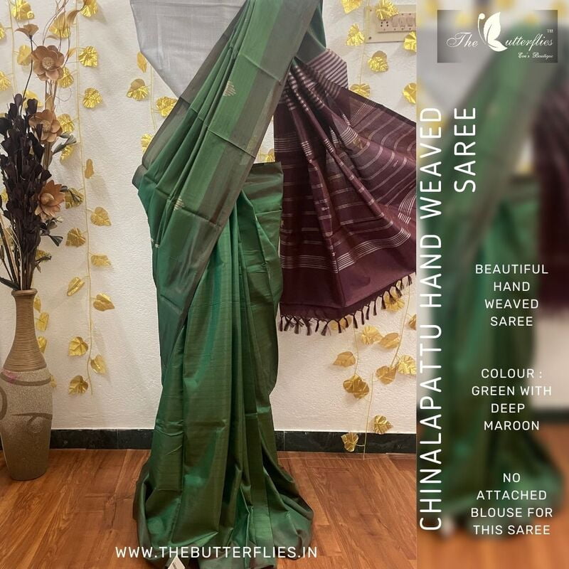 Chinnalapattu as famously known as vazhainaar pattu. these sarees are made from natural banana fibers. It has a great shine which is maintained after every wash. It gives a good fit to traditional kanchivaram sarees. A simple and elegant silk saree at a budget friendly cost. There is no attached blouse in this saree
